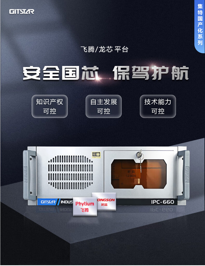 ¥8610.00GITSTAR集特 IPC-660国产飞腾FT2000四核工业服务器主机(16G/512GSSD/JM7201 2G独显/正版系统)