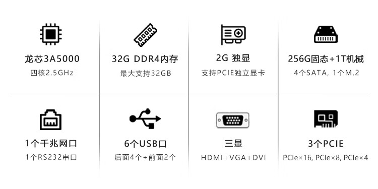 GITSTAR集特 国产龙芯3A5000四核3C节能商用台式机电脑GPC-100 主频2.5GHz(32G内存/256G/1T机械/2G独显) 自营