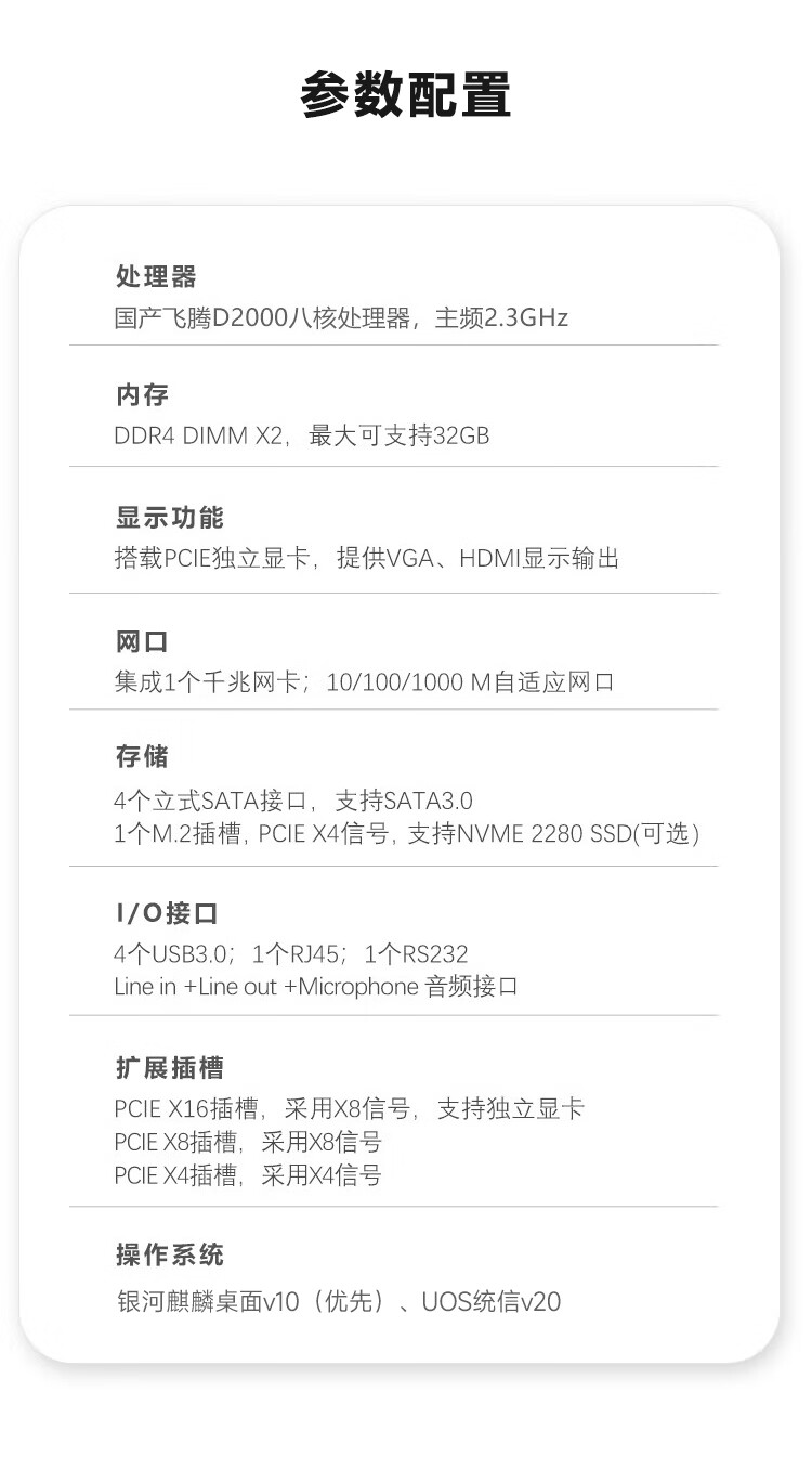 ¥7710.00GITSTAR集特 国产飞腾FT2000四核3C节能商用台式机GPC-100(16G/512GSSD+2T机械/AMD 2G独显/250W)
