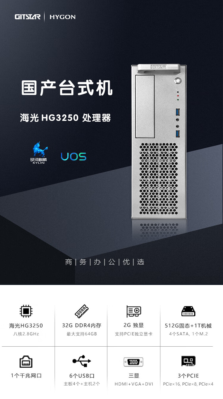 ¥4658.00GITSTAR集特 国产海光HG3250商用办公台式机GPC-100(16G/128GSSD+4T机械/GT730 2G/4网口卡/700W)