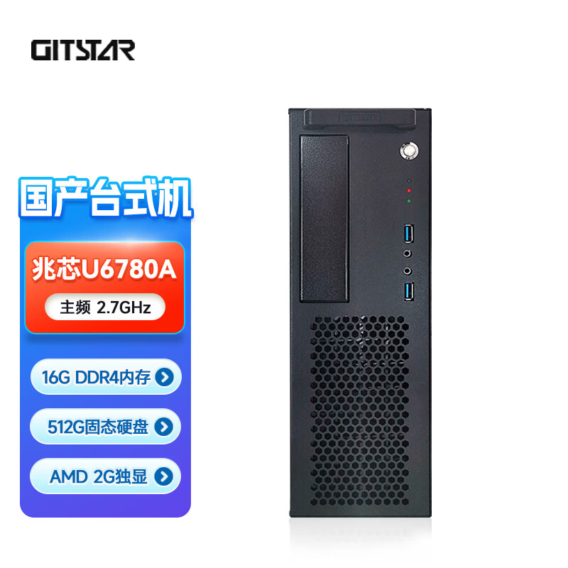 GITSTAR集特 国产兆芯KX-U6780A八核3C节能台式机电脑GPC-100(16G/512GSSD/AMD 2G独显) 自营