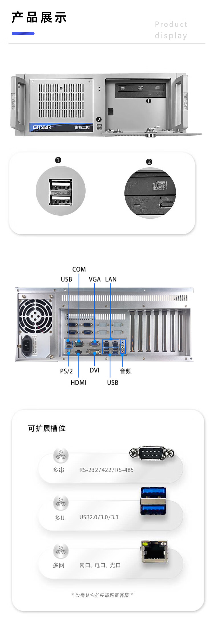 GITSTAR集特 酷睿6代4u工控机兼容研华工业电脑主机IPC-610L(G4400/4G内存/256G固态) 自营