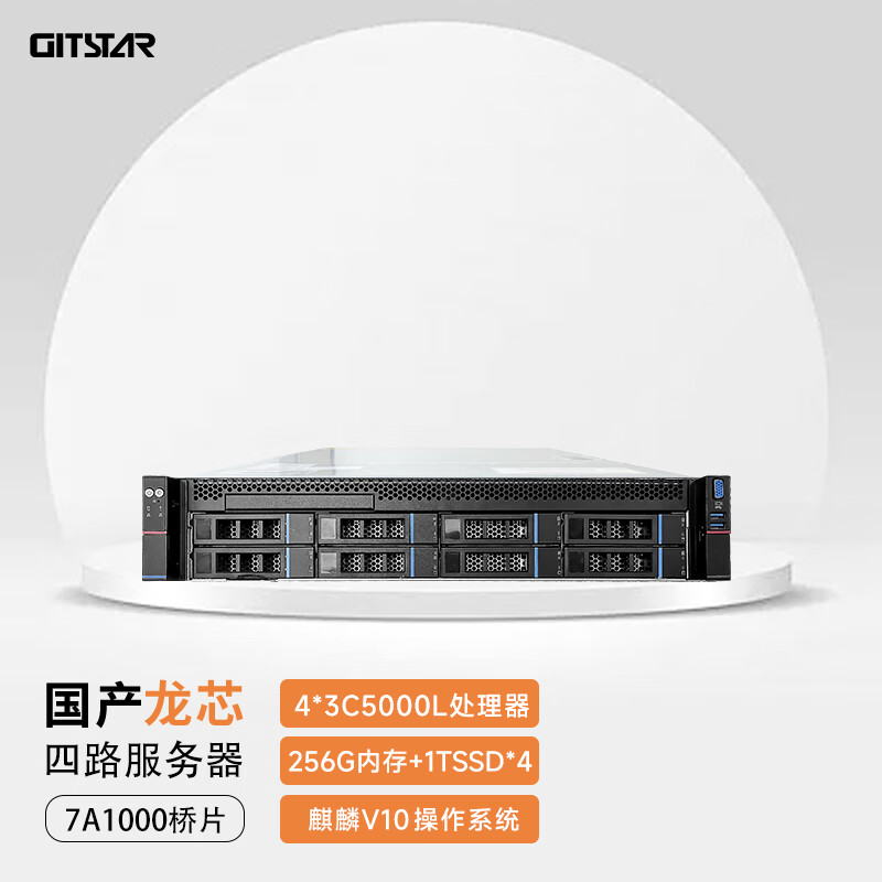 ¥61999.00GITSTAR集特 国产2u机架式四路服务器GDC-2000(4颗龙芯3C5000L/64G内存/256GSSD/1G raid卡9361-8i)