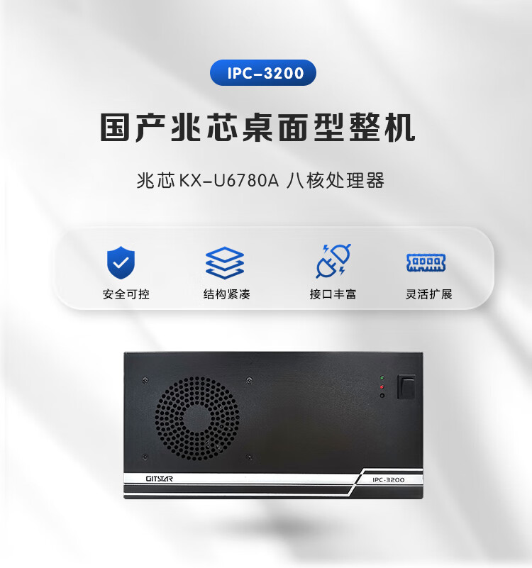 GITSTAR集特 国产化兆芯KX-U6780A八核小型桌面式工控机工业电脑主机IPC-3200(8G/512GSSD/AMD 2G独显) 自营