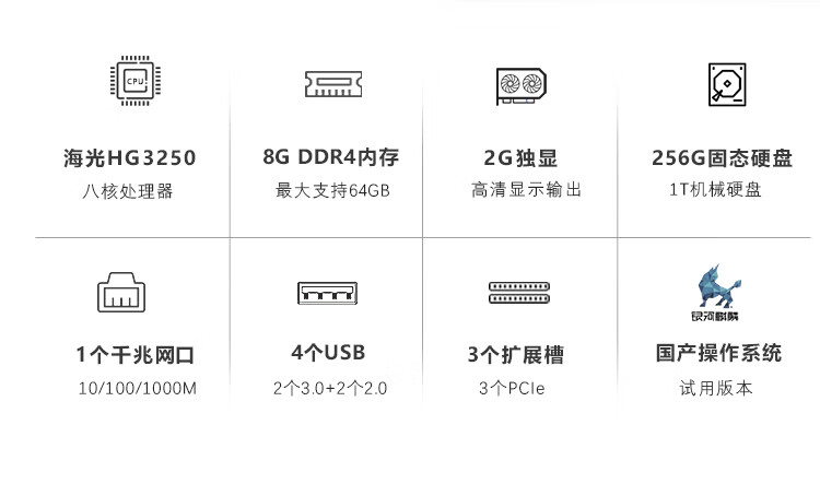 GITSTAR集特 国产海光HG3250八核小型桌面工控机IPC-3200(8G内存/256GSSD/1T机械/2G独显) 自营