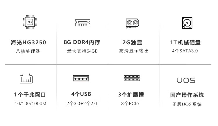 GITSTAR集特 国产海光HG3250桌面小型工控机IPC-3200(8G内存/1T机械/2G独显/UOS系统) 自营