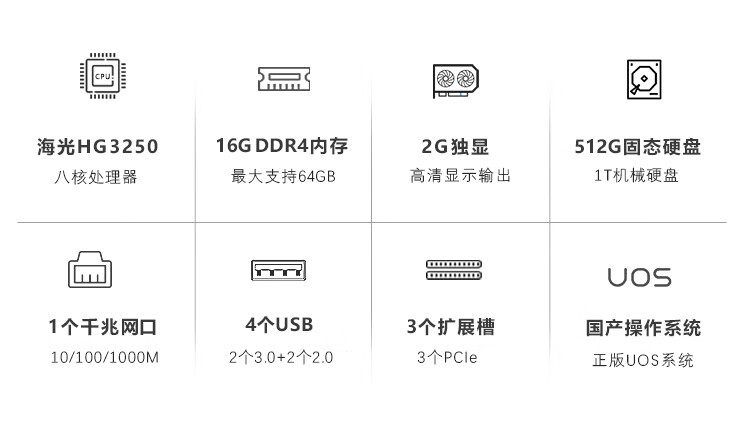 GITSTAR集特 国产海光3250八核小型桌面工控机IPC-3200(16G内存/512GSSD/1T机械/2G独显/UOS系统) 自营