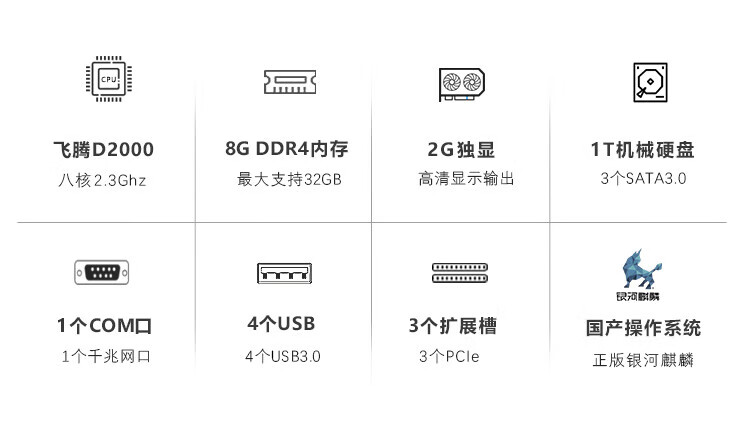 GITSTAR集特 桌面小型工控机主机IPC-3200 国产飞腾D2000八核/8G内存/1T机械/2G独显/麒麟V10 自营