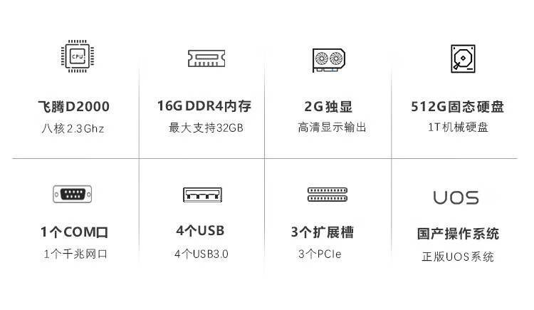 GITSTAR集特 国产飞腾D2000小型工控机IPC-3200桌面工业电脑主机16G内存/512GSSD/1T机械/2G独显/UOS系统 自营