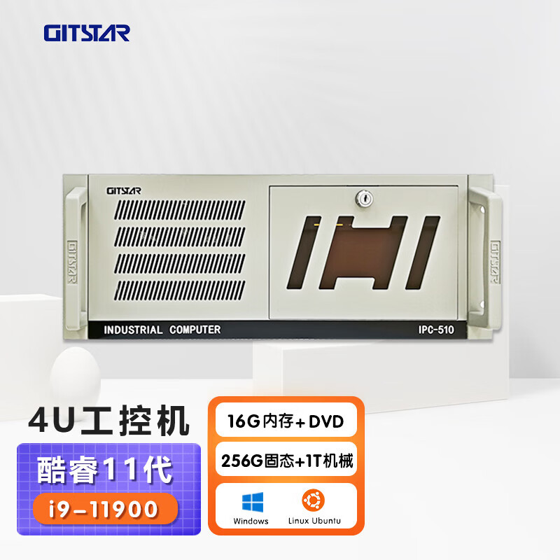 GITSTAR集特 酷睿11代4u工控机主机IPC-510双网口三显服务器工业电脑(i9-11900/16G/256GSSD/1T机械/DVD) 自营