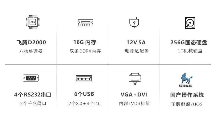 GITSTAR集特 国产飞腾D2000嵌入式工控机G104-F1无风扇电脑主机16G/256GSSD/1T机械/麒麟v10 自营