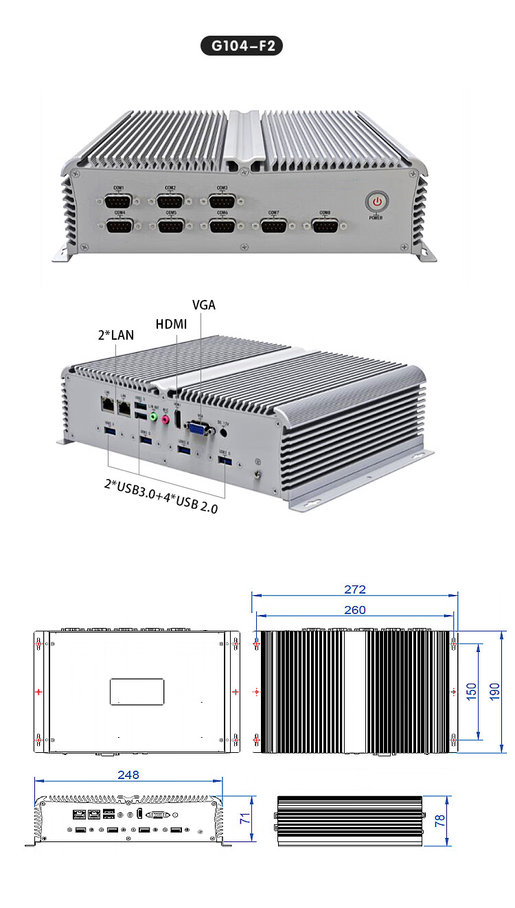 GITSTAR 集特国产飞腾D2000嵌入式无风扇工控机G104-F1 自营