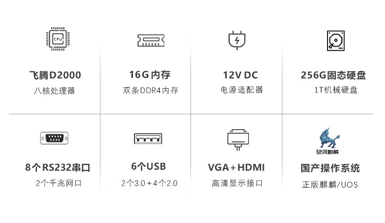 GITSTAR集特 无风扇嵌入式工控机G104-F2国产飞腾D2000八核/16G/256GSSD/1T机械/银河麒麟V10 自营