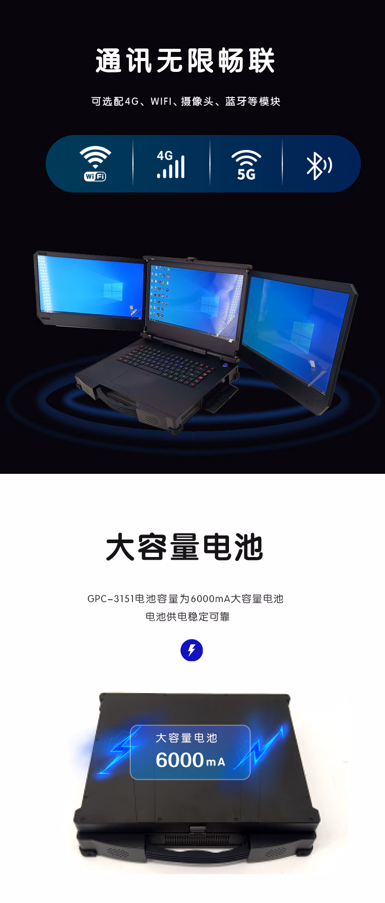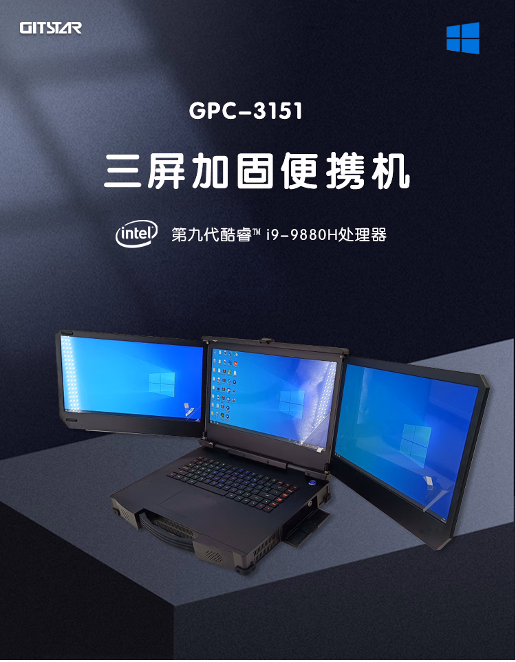 GITSTAR集特 15.6英寸三屏便携加固笔记本电脑酷睿9代工业加固机GPC-3151(i9-9880H/16G/1TSSD/4G显卡) 自营