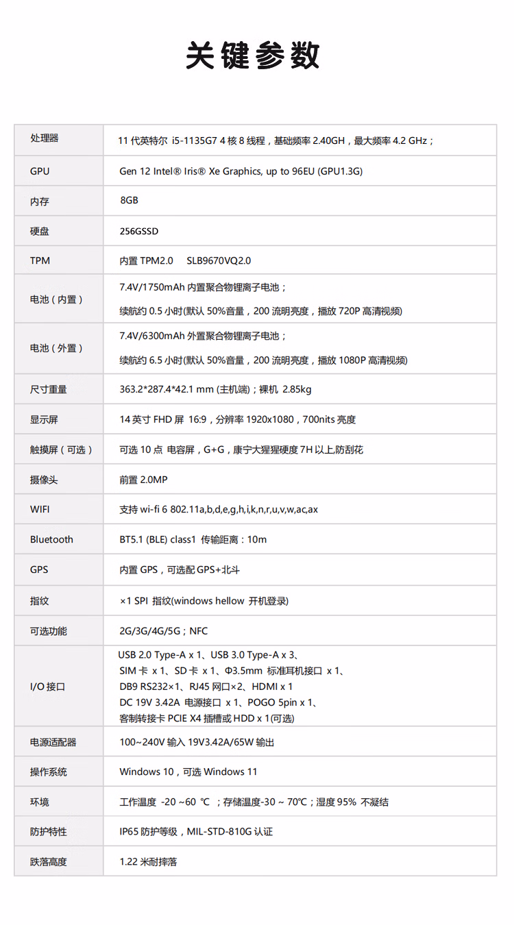 ¥4400.00GITSTAR集特14英寸酷睿11代三防加固笔记本电脑GPC-H14B高亮屏耐高低温(i5-1135G7/8G/512GSSD)