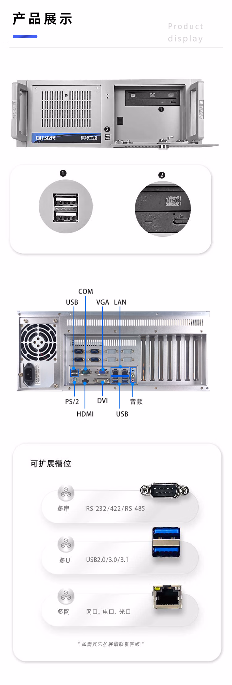 ¥5724.00GITSTAR集特 国产2U工控机兆芯KX-U6580八核处理器IPC-8820(16G内存/512G固态/2T机械/景嘉微2G显卡)