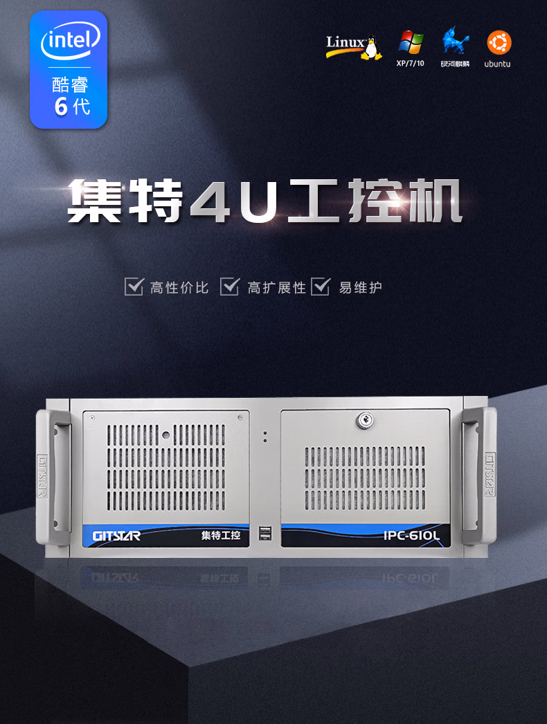 GITSTAR集特 4u工控机酷睿6代三显2个PCI工业电脑主机IPC-610L(i7-6700/16G/512GSSD/2T机械/2G独显) 自营