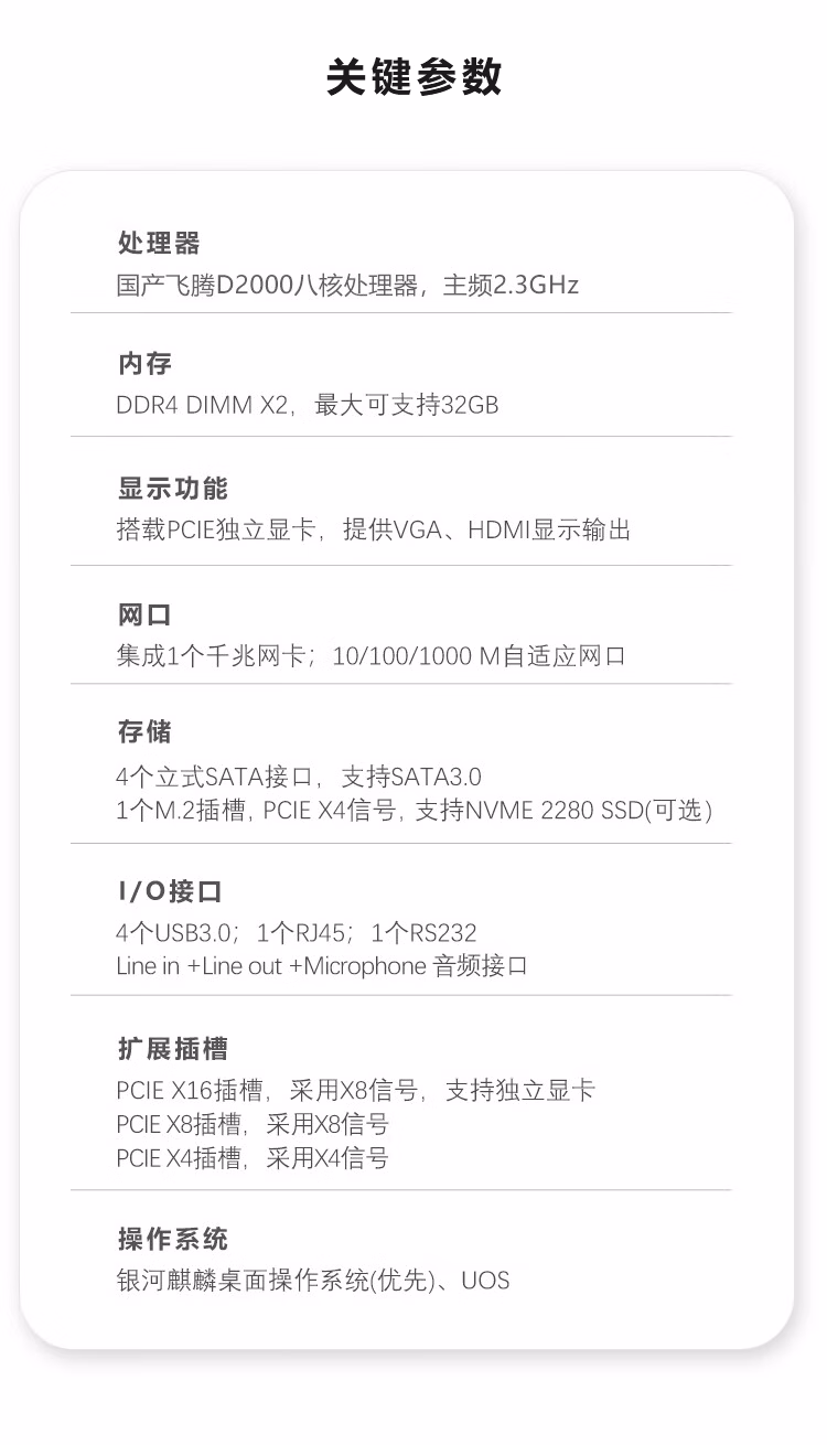 GITSTAR集特 国产2U工控机飞腾D2000支持4个USB工业电脑主机IPC-8820(16G/256GSSD+2T/2G独显) 自营