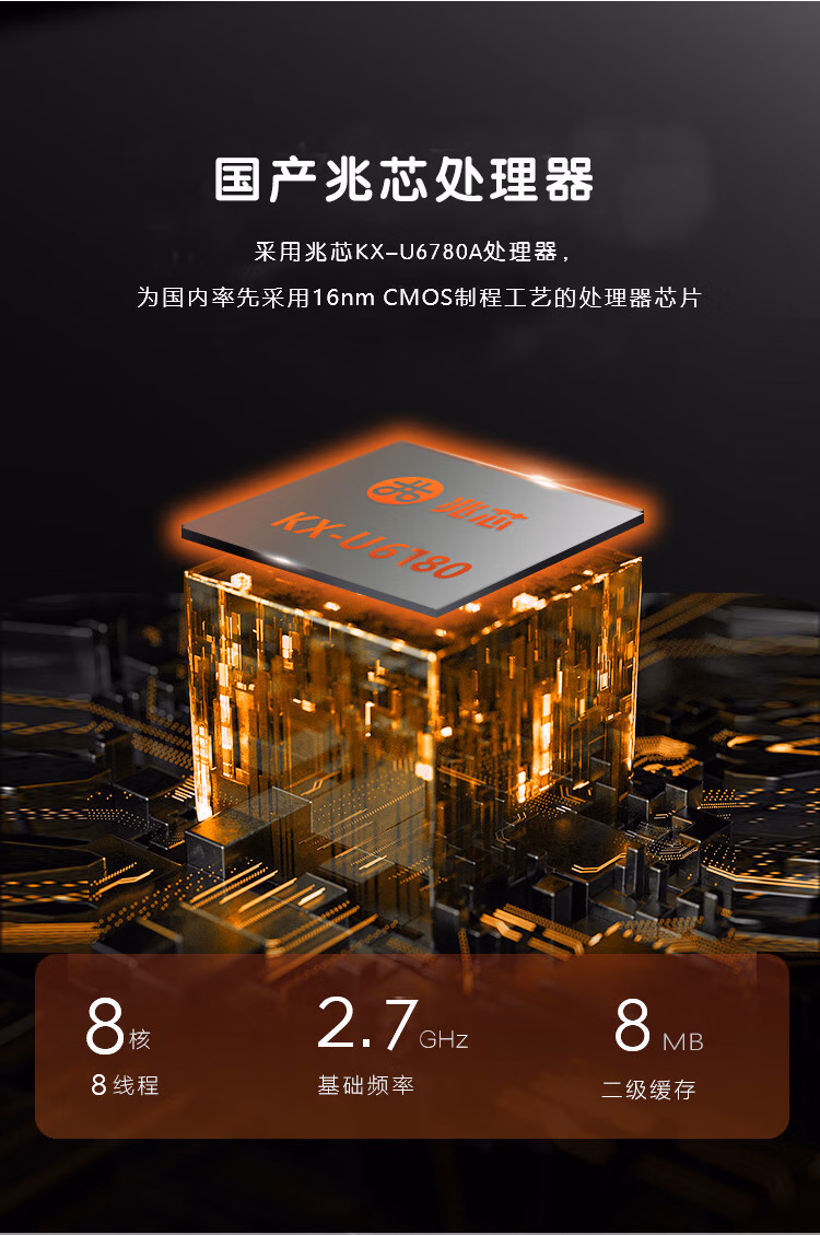 GITSTAR集特 国产化兆芯KX-U6780A台式机电脑主机GPC-100(32G/2TSSD+4T机械/250W/正版麒麟桌面系统) 自营