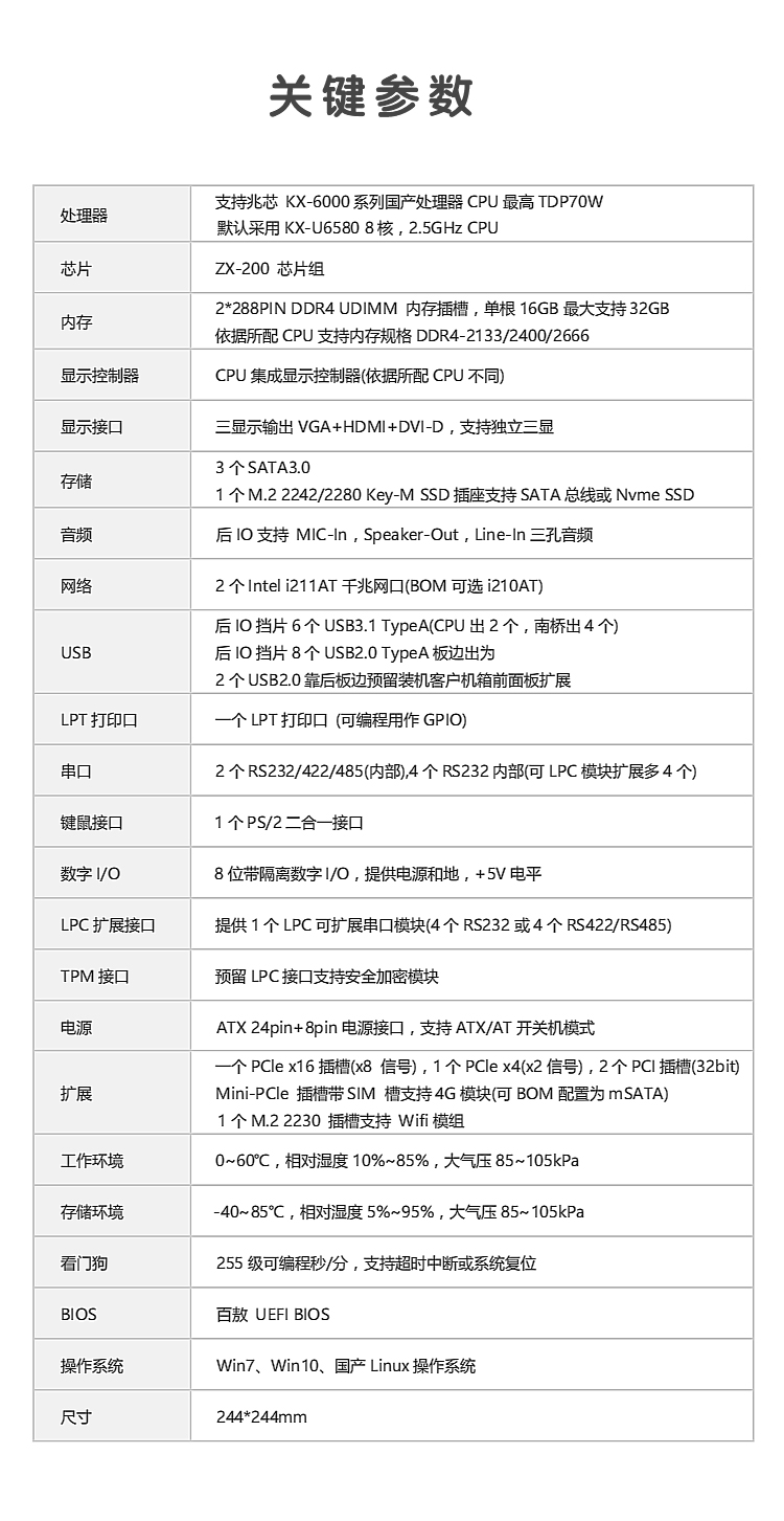 ¥3000.00GITSTAR集特 国产兆芯KX-U6580八核工控主板GM9-6601 主频2.5Ghz 支持win7/10系统
