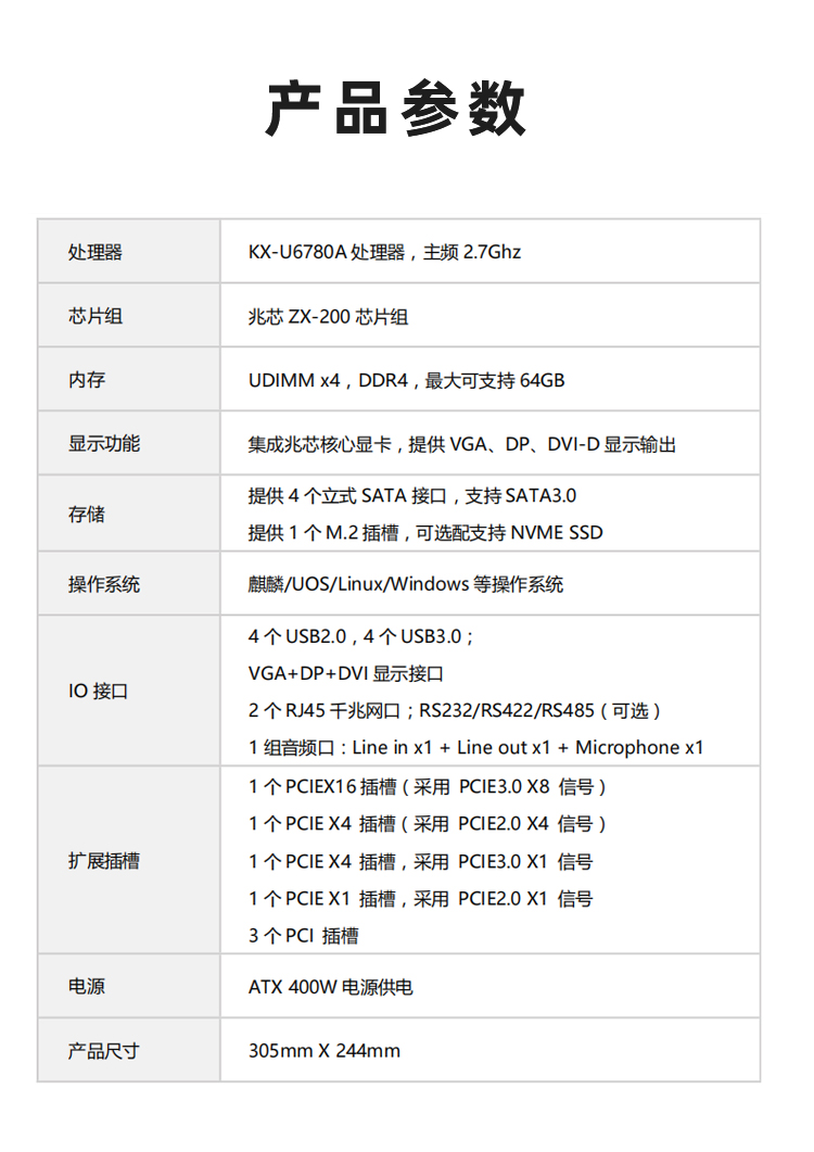 ¥2500.00GITSTAR集特 国产兆芯KX-U6780A八核工控主板GM9-6002主频2.7Ghz 支持Win/麒麟/UOS系统