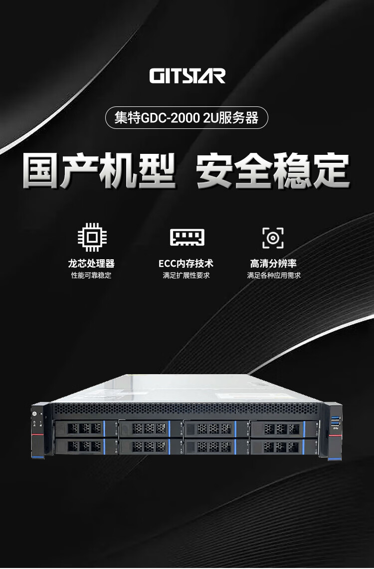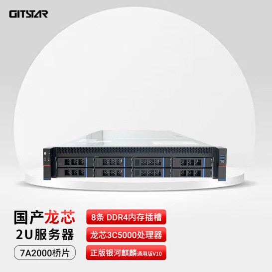 GITSTAR集特 国产化双路2U服务器GDC-2000(128G/960G*2+10T/国产4G/raid卡9361-8i//正银河麒麟通用版V10) 自营