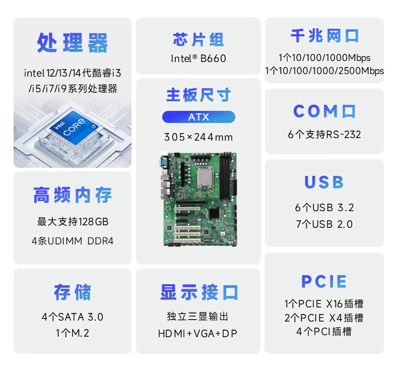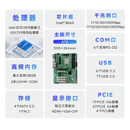 ¥6180.00GITSTAR集特GM0-1616-05酷睿12/13/14代i3i5i7系列B660工控机主板Intel高性能ATX工业电脑主板