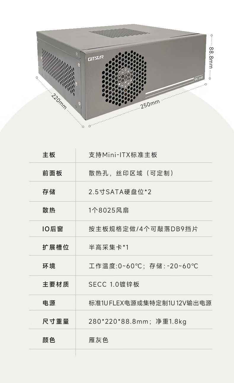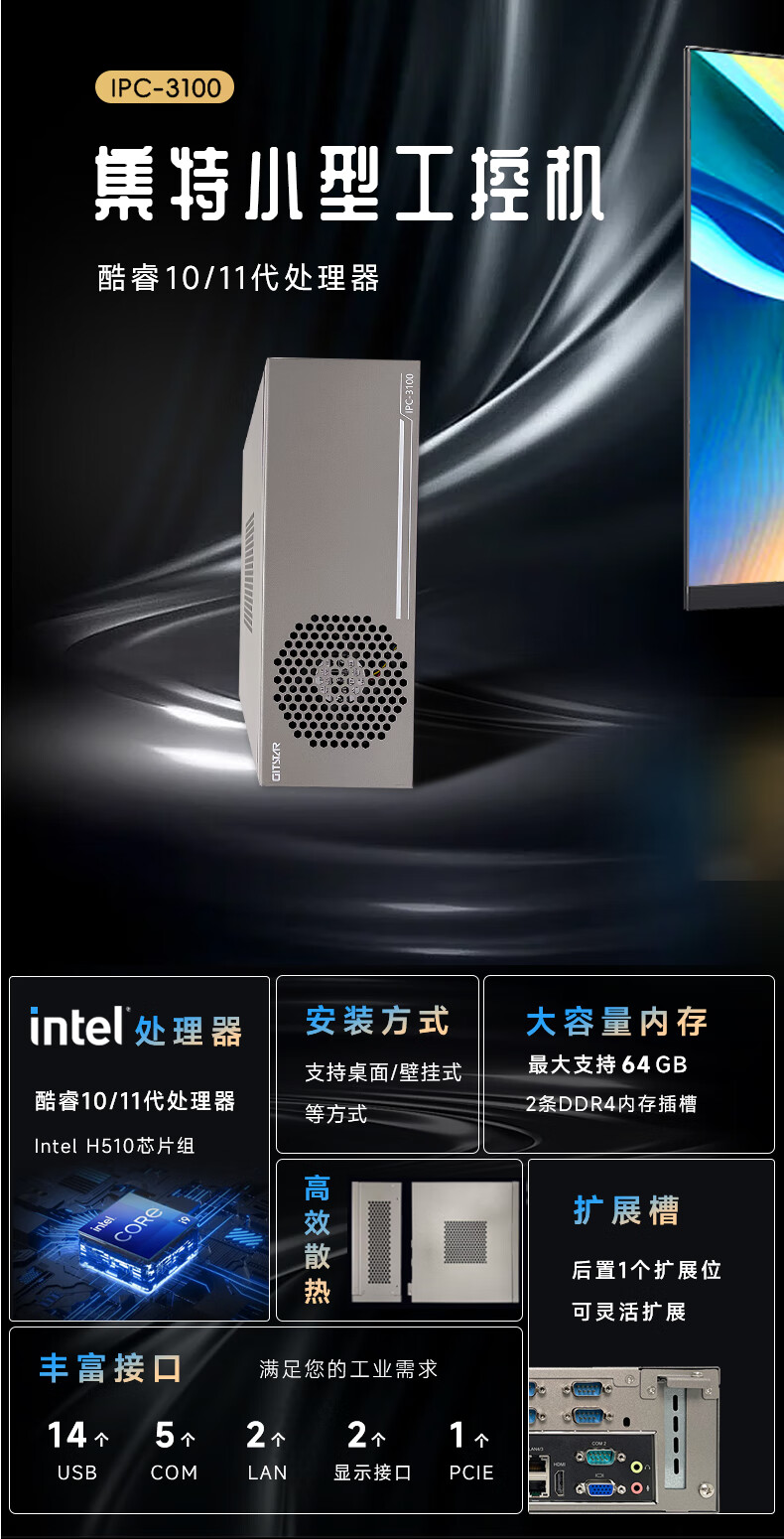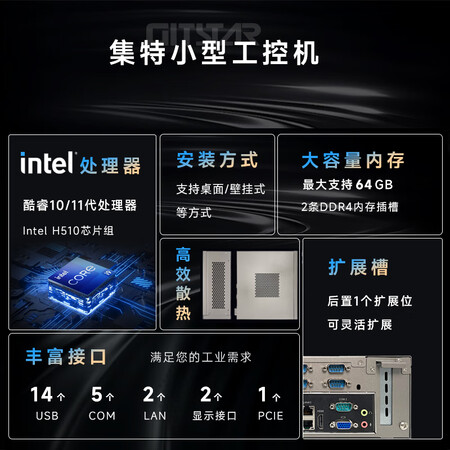 GITSTAR集特工控机酷睿10/11代处理器多U多串小型紧凑型计算机IPC-3100(I5-11500/16G/256GSSD/1T) 自营