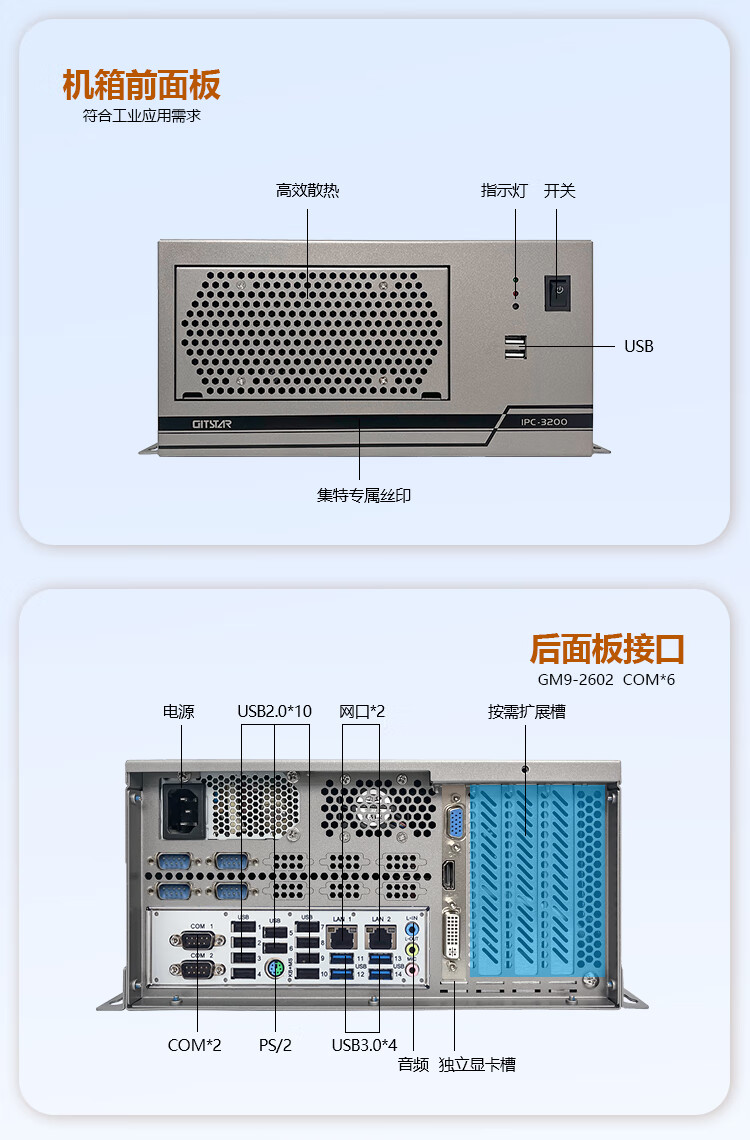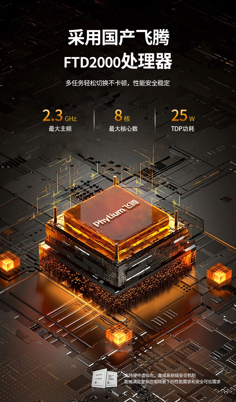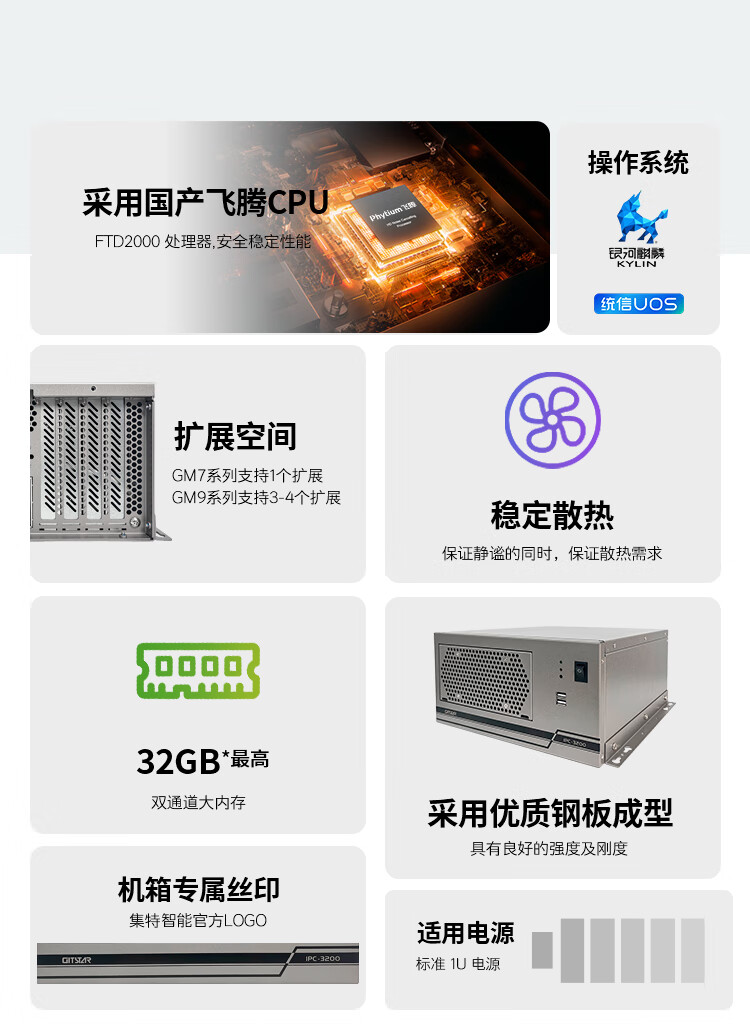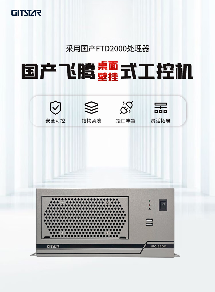 GITSTAR集特国产飞腾D2000处理器桌面/壁挂式工控机IPC-3200(16G/1TSSD/X1004G/COM*9/250W) 自营