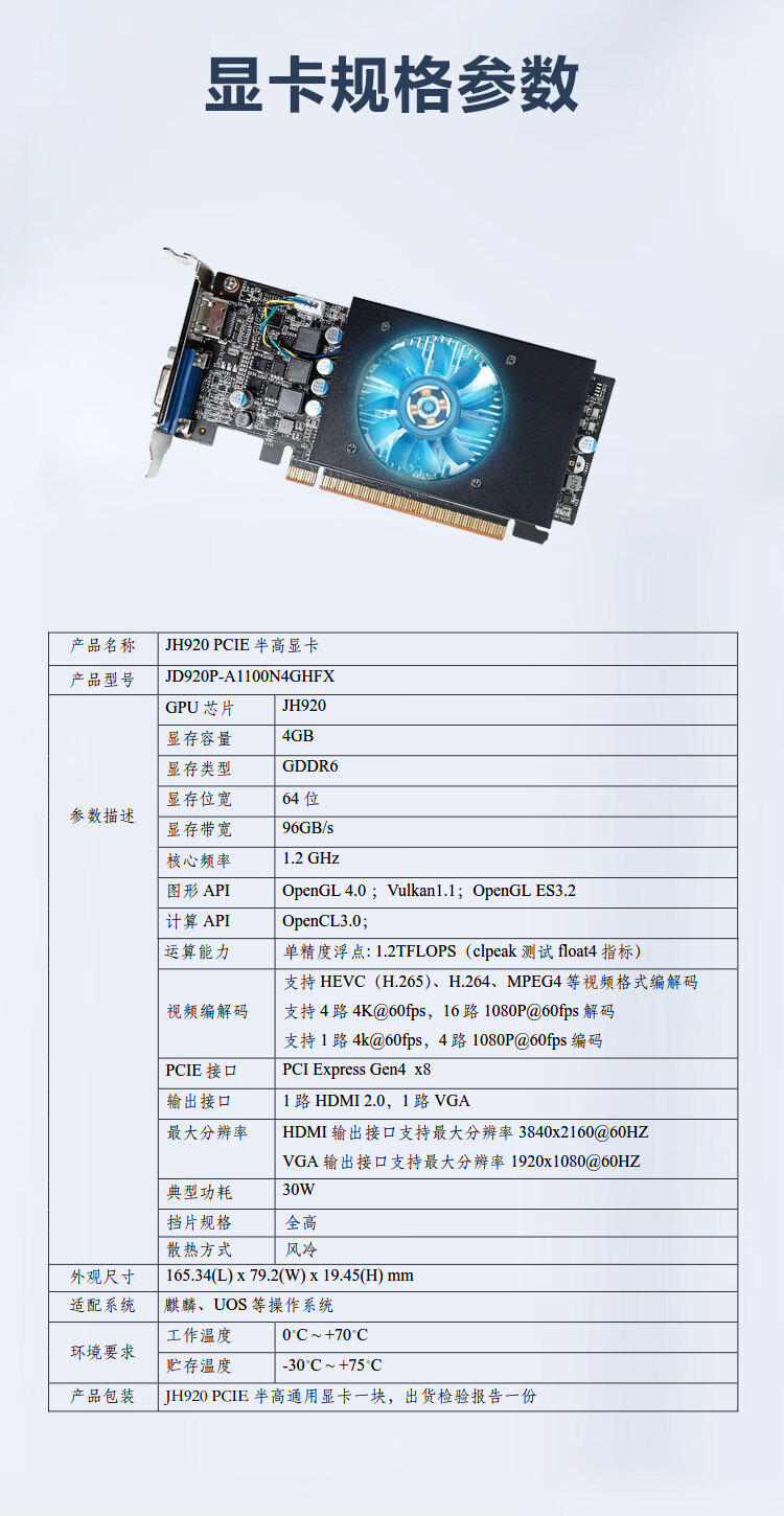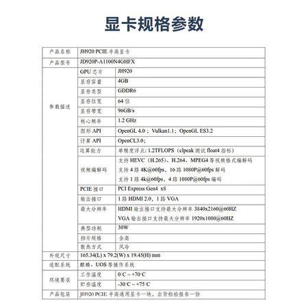 GITSTAR集特景嘉微标准半高PCIE国产工业级显卡JH9204G/4路HDMI2.0接口输出 自营