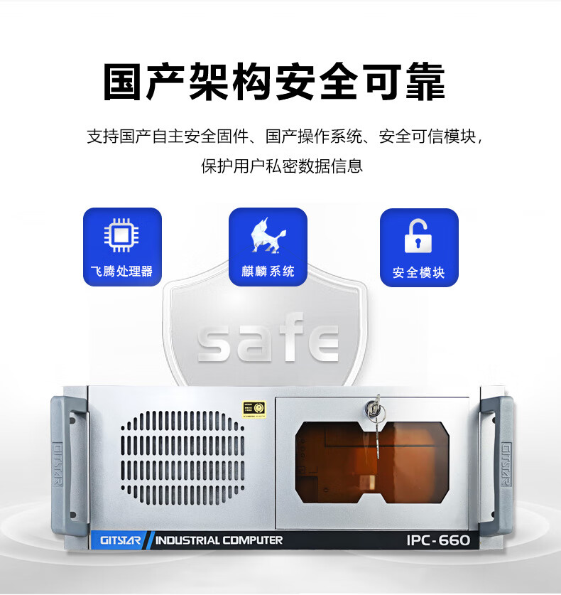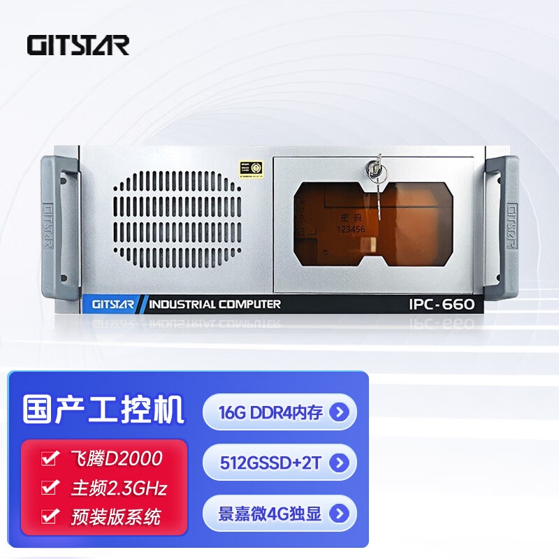 GITSTAR集特 国产化飞腾D2000八核工控机IPC-660工业电脑主机(16G/512GSSD+2T机械/景嘉微JM9230 4G独显) 自营