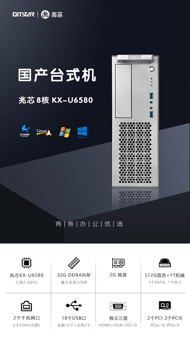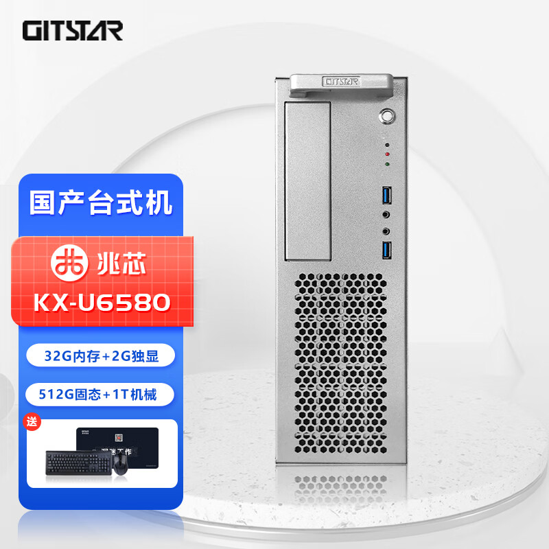 GITSTAR集特 国产兆芯KX-U6580八核3C节能台式机电脑GPC-100(32G内存/512G固态/1T机械/2G独显) 自营