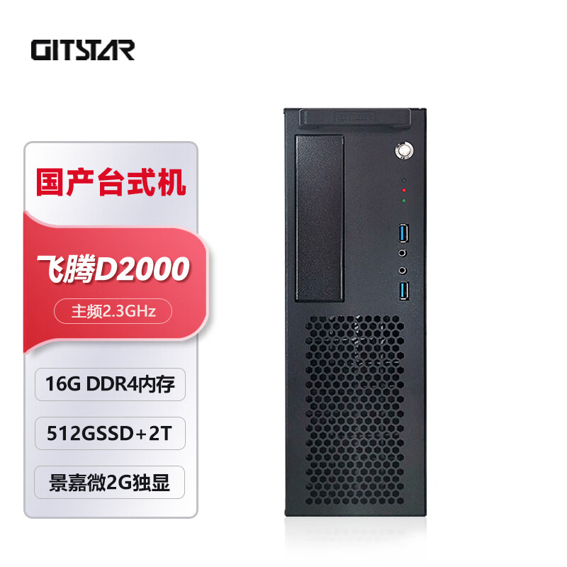 GITSTAR集特 国产飞腾D2000八核3C节能商用台式机电脑GPC-100(16G/512G+2T/景嘉微JM7500 2G独显/正版系统) 自营