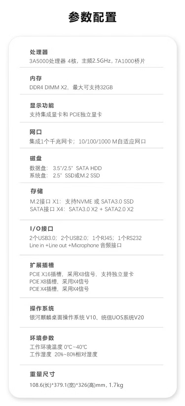 GITSTAR集特 国产龙芯3A5000四核3C节能商用台式机电脑GPC-100 主频2.5GHz(32G/256G+1T/2G独显/正版UOS) 自营