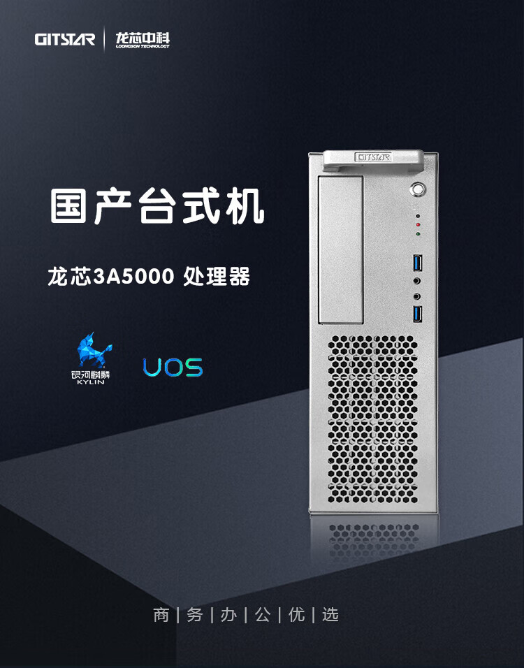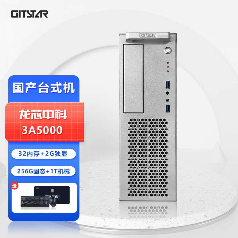 GITSTAR集特 国产龙芯3A5000四核3C节能商用台式机电脑GPC-100 主频2.5GHz(32G内存/256G/1T机械/2G独显) 自营