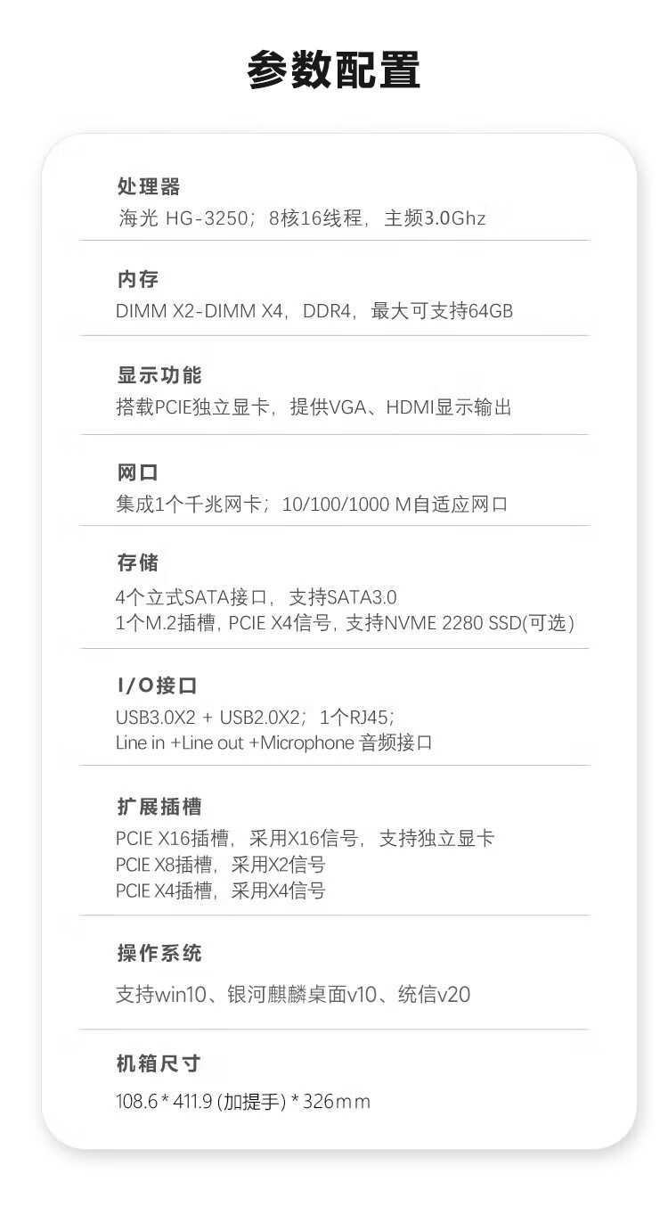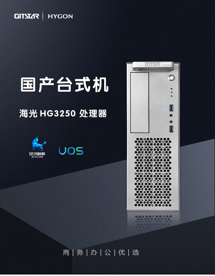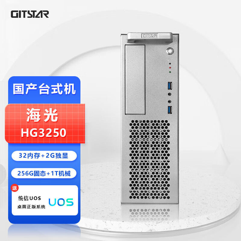GITSTAR集特 国产海光HG3250 3C节能台式机电脑主机GPC-100(32G/256G SSD+1T/2G独显/正版UOS ) 自营