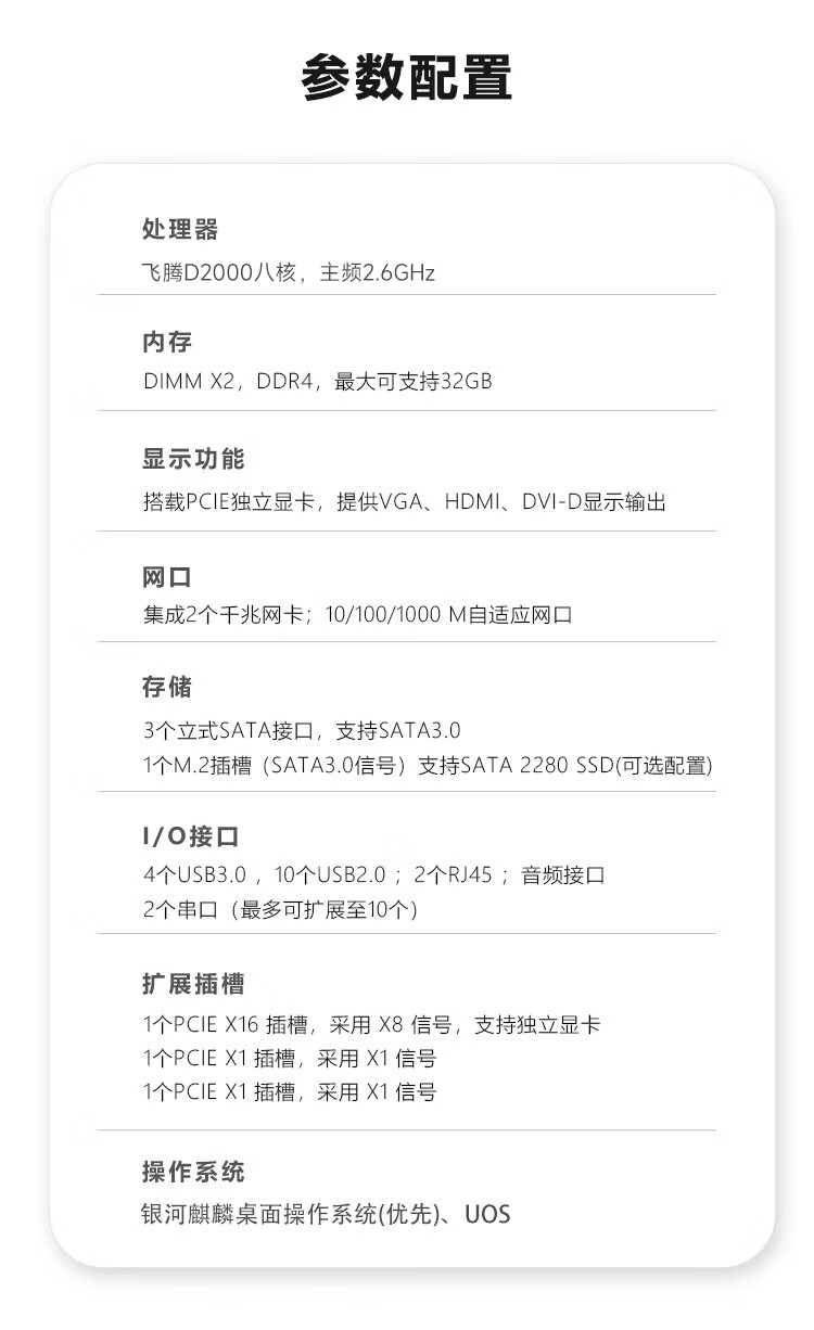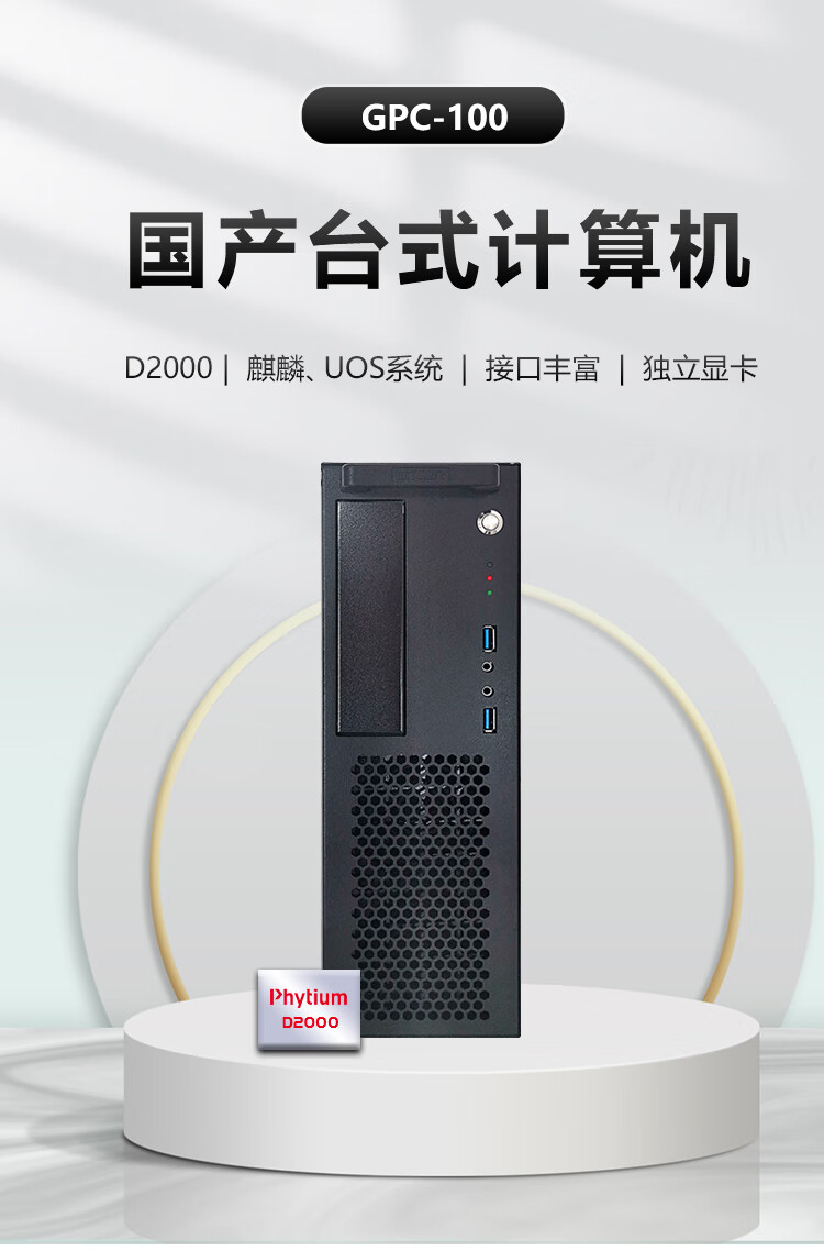 GITSTAR集特 国产飞腾D2000双网多串口商用台式机电脑GPC-100(16G/512GSSD/景嘉微JM7201 2G独显/正版系统) 自营