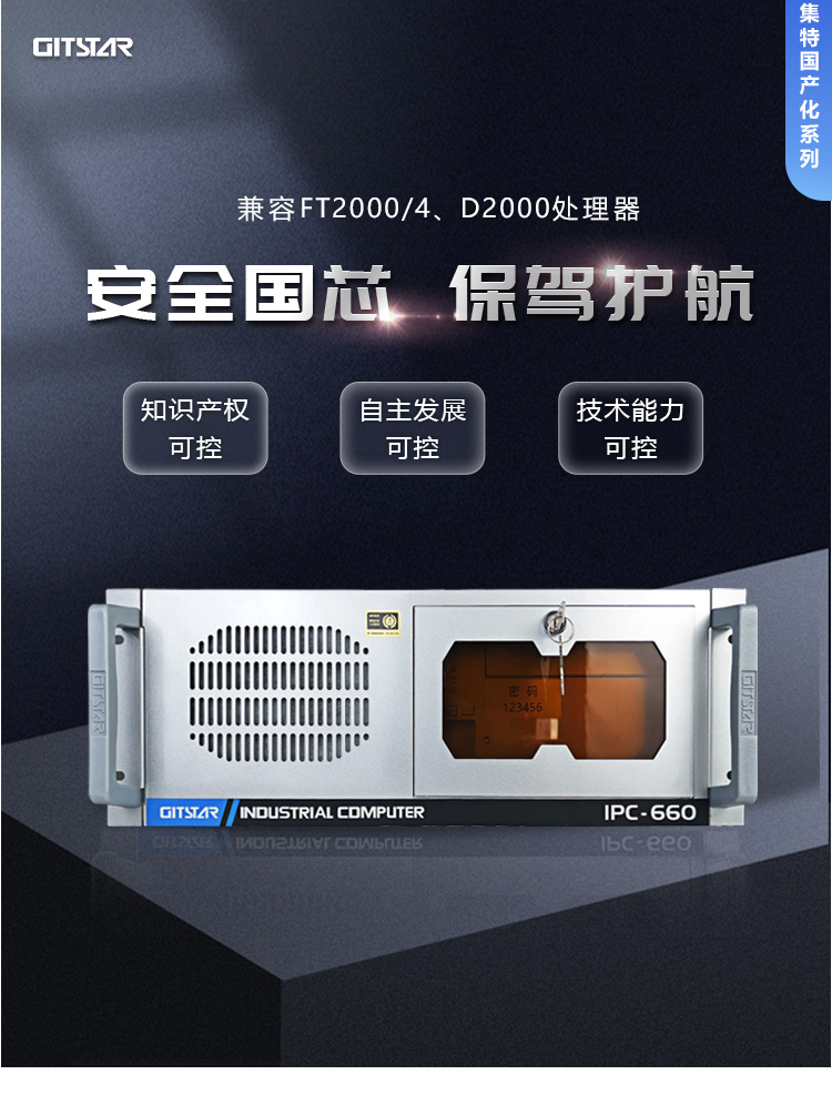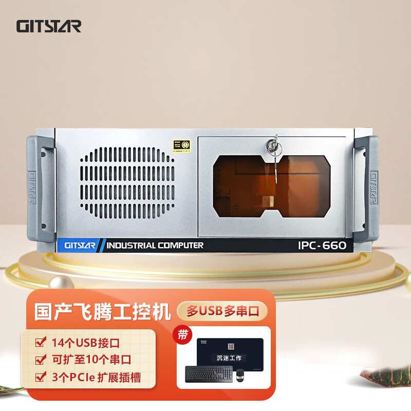 GITSTAR集特 国产芯片4u工控机 飞腾FT2000四核工业服务器主机IPC-660(16G内存/256G固态/2T/2G独显) 自营