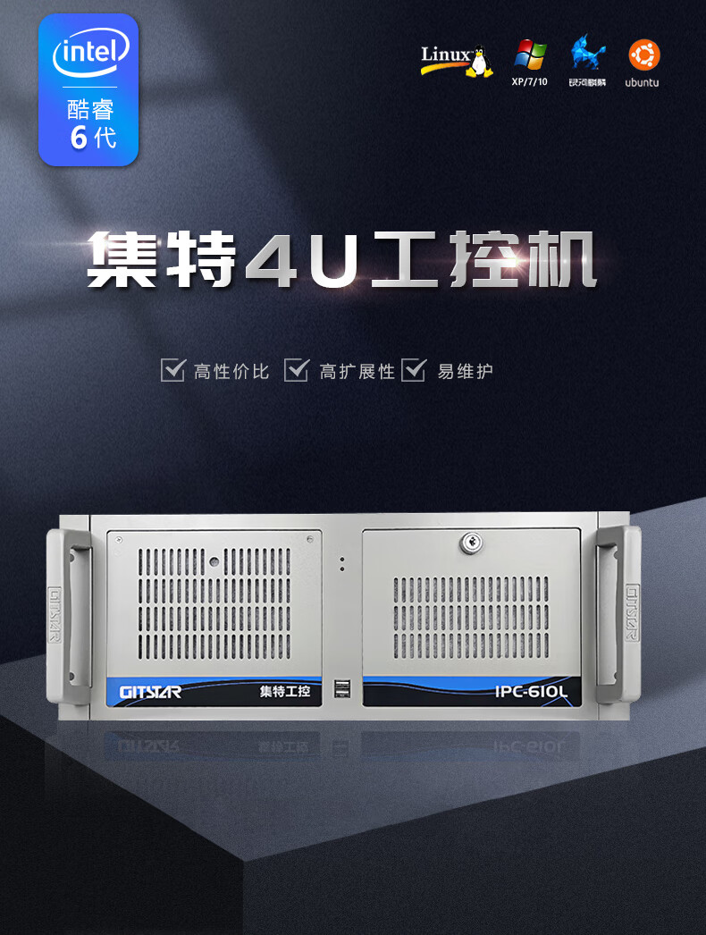 GITSTAR集特 酷睿6代4u工控机兼容研华工业电脑主机IPC-610L(G4400/4G内存/256G固态) 自营