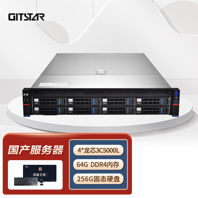 GITSTAR集特 国产2u机架式四路服务器GDC-2000(4颗龙芯3C5000L/64G内存/256GSSD/1G raid卡9361-8i) 自营