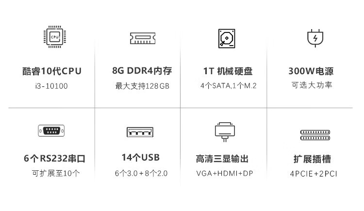 GITSTAR集特 酷睿10代IPC-510工控机支持4个PCIE槽工业电脑主机(i3-10100/8G内存/1T硬盘) 自营
