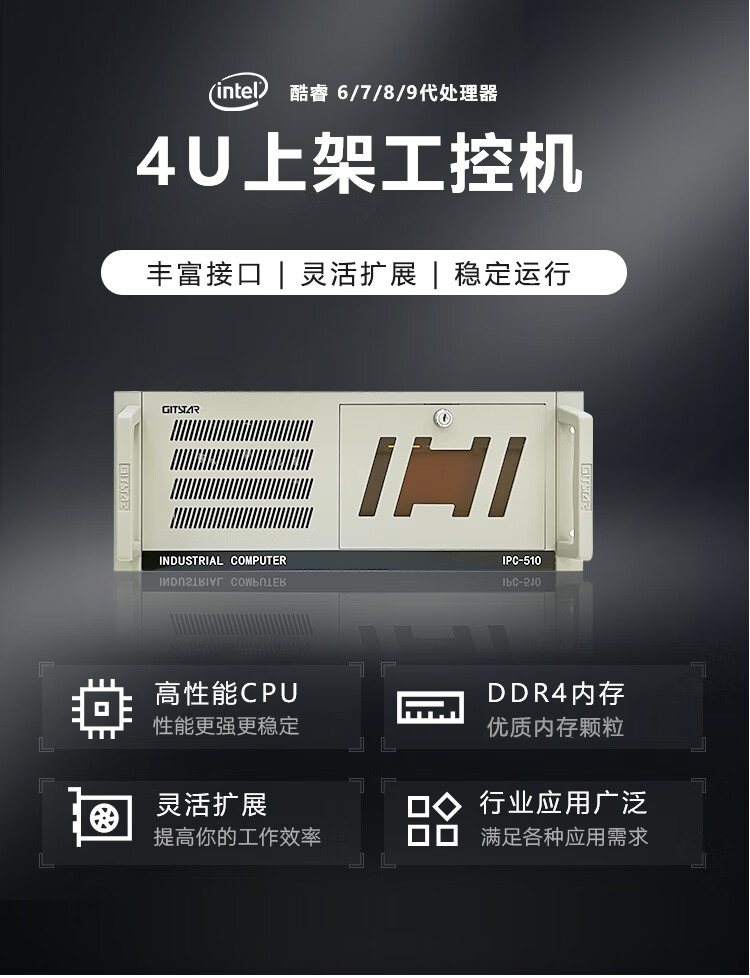GITSTAR集特 工控机IPC-510酷睿8代双网口10USB服务器工业电脑主机(i3-8100/4G/1T) 自营