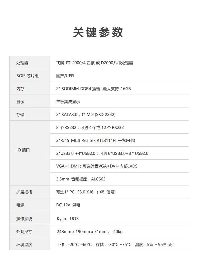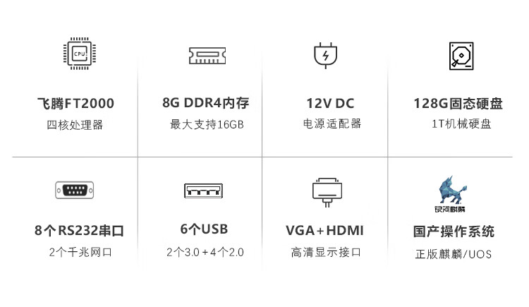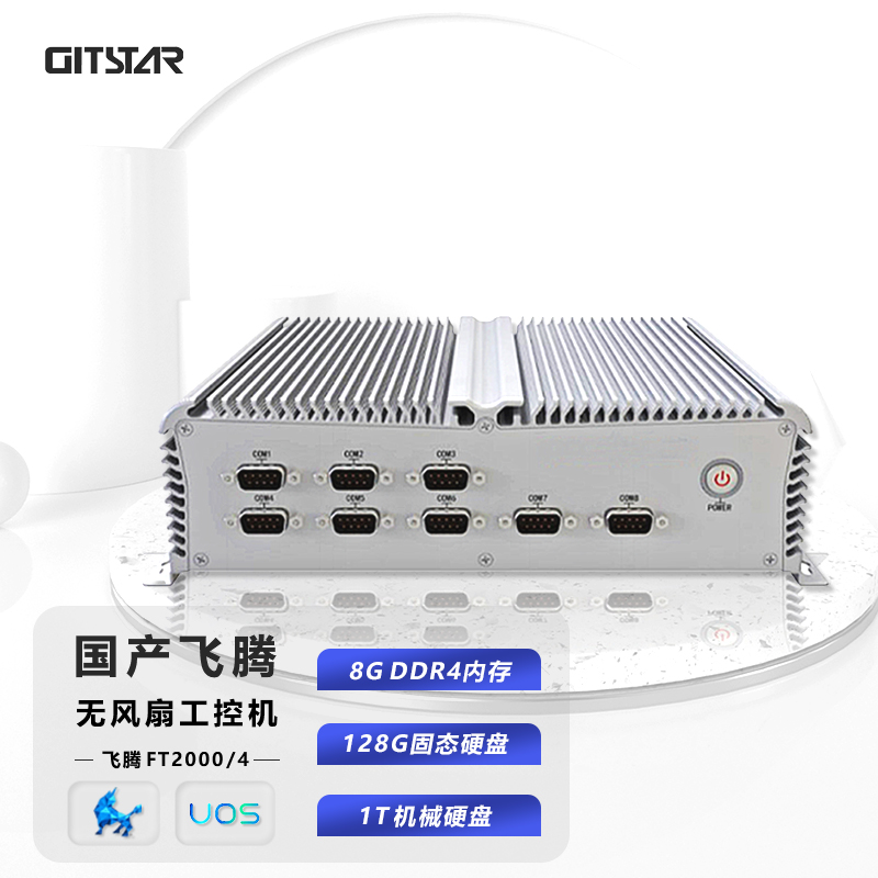 GITSTAR集特 无风扇嵌入式工控机主机G104-F2国产飞腾FT2000/8G内存/128G固态/1T机械/麒麟V10 自营