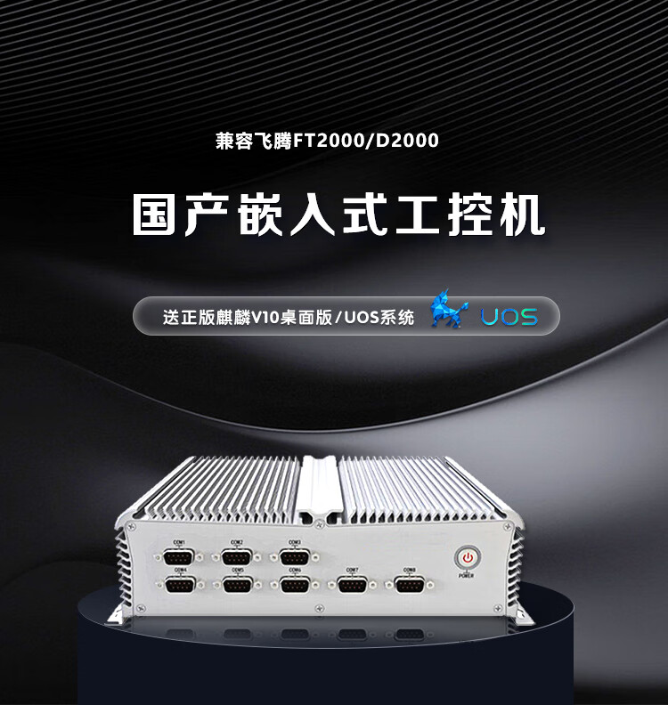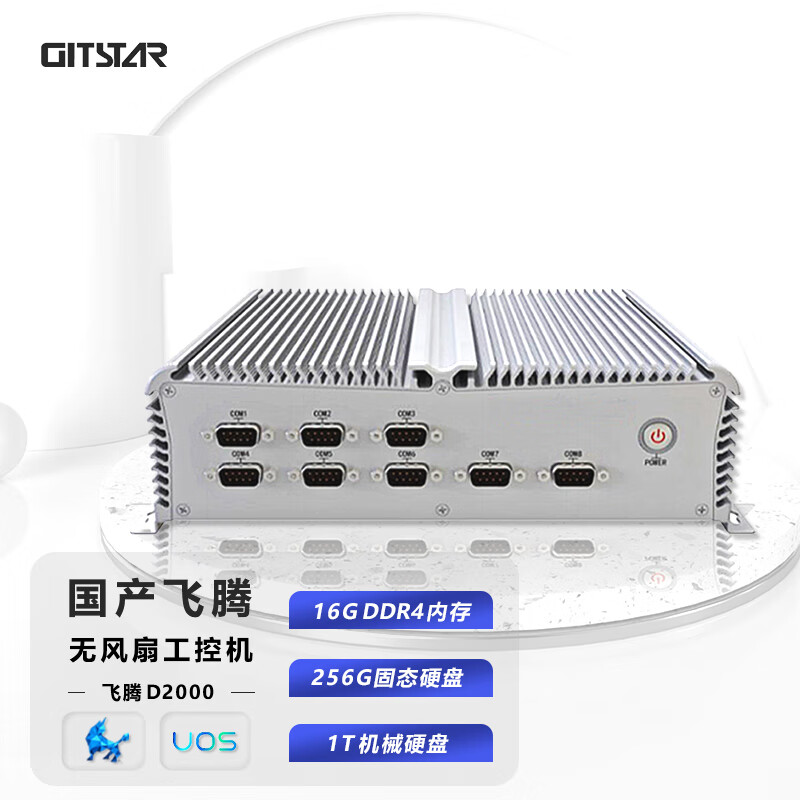 GITSTAR集特 无风扇嵌入式工控机G104-F2国产飞腾D2000八核/16G/256GSSD/1T机械/银河麒麟V10 自营