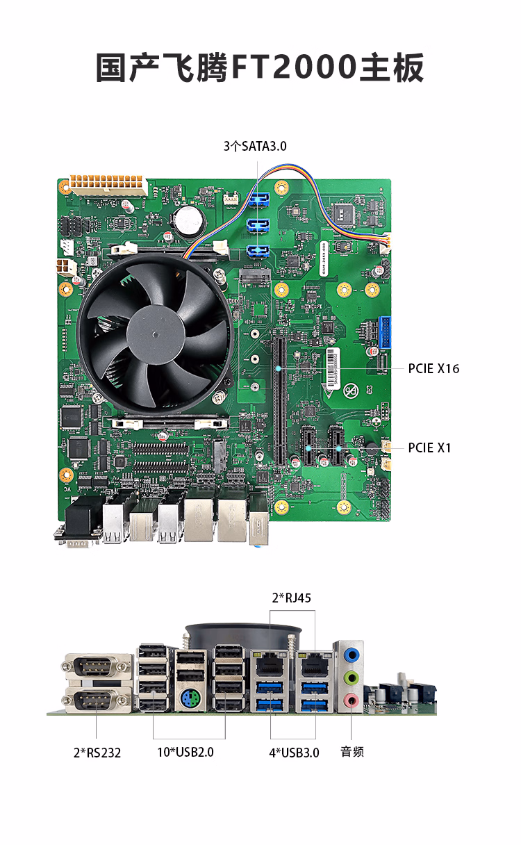 GITSTAR集特 国产飞腾FT2000双网多串口商用台式机电脑GPC-100(16G/512GSSD+2T机械/景嘉微JM7500 4G独显)