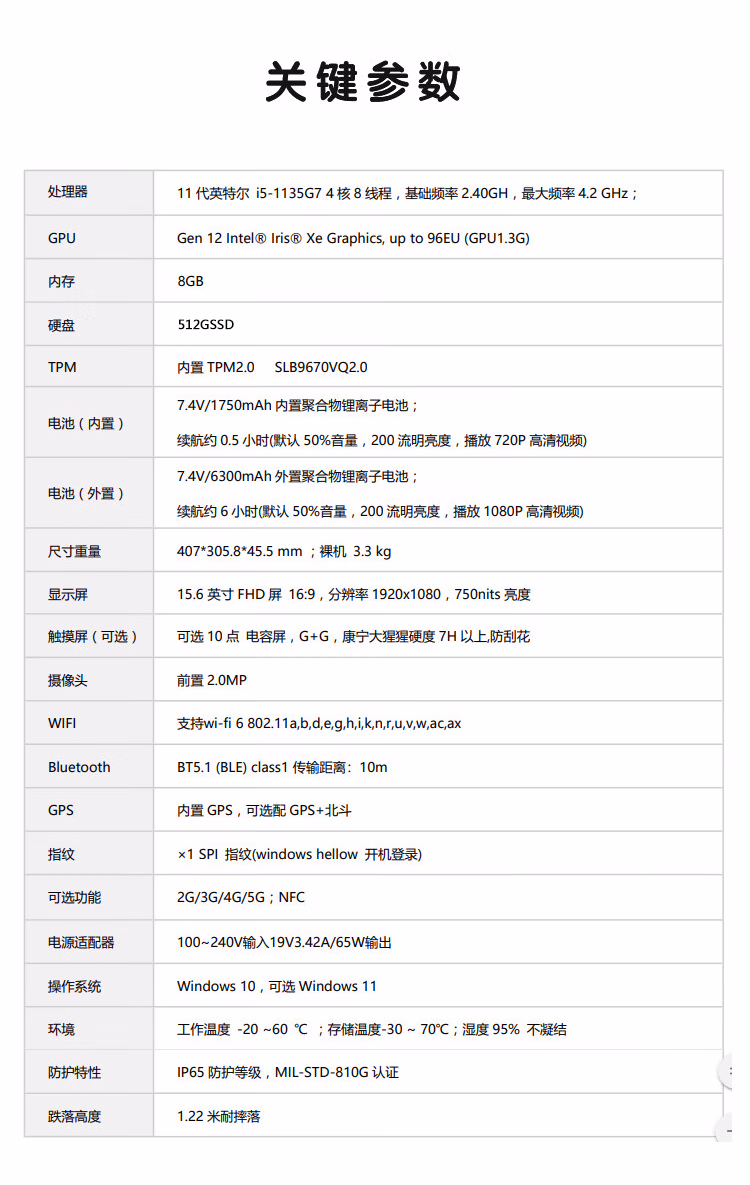 ¥16168.00GITSTAR集特 15.6英寸酷睿11代加固三防笔记本电脑GPC-J15B支持GPS定位(i5-1135G7/8G/512GSSD)