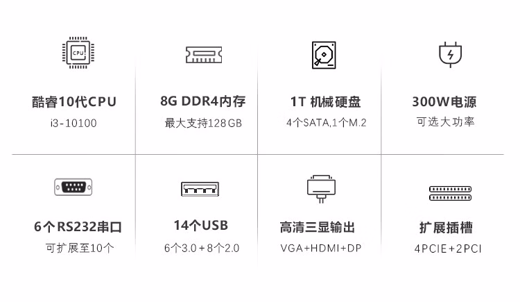 GITSTAR集特 酷睿10代工控机IPC-610L工业自动化控制电脑主机(I3-10100/8G内存/1T硬盘) 自营