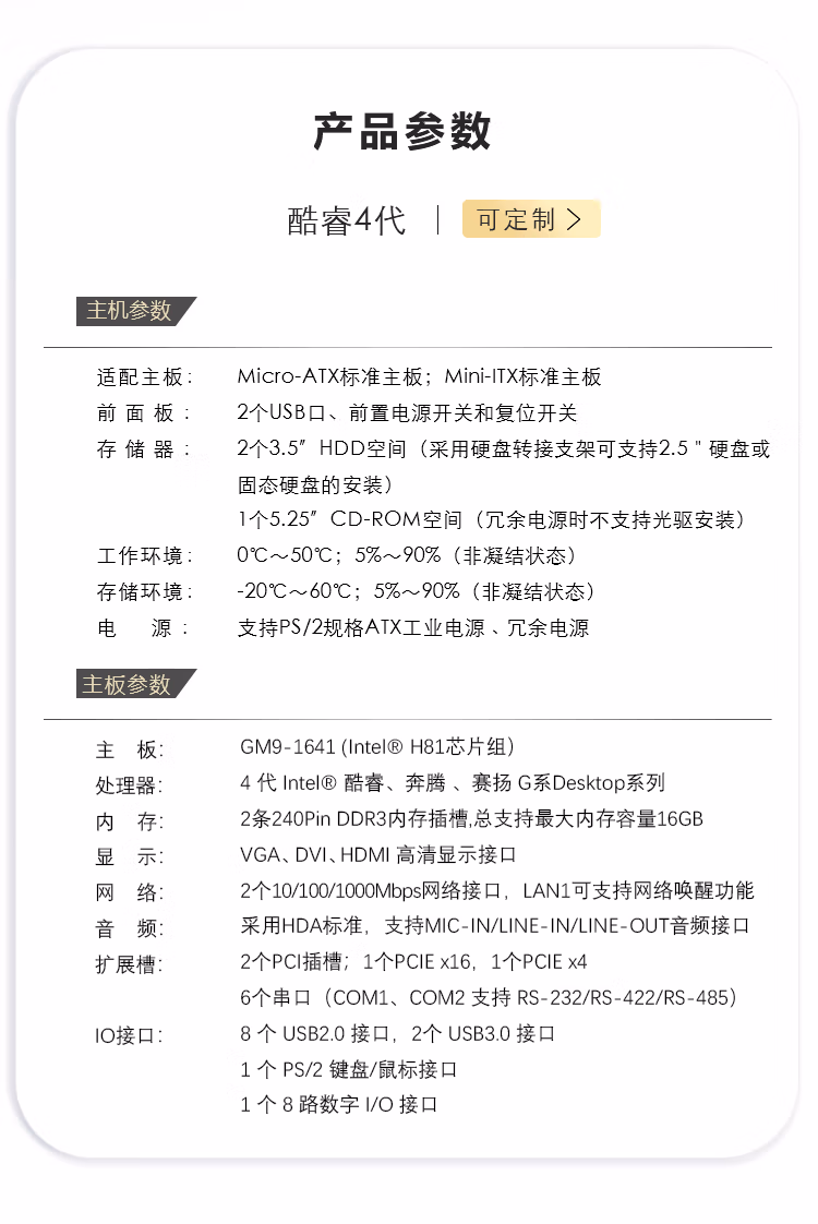 集特(GITSTAR)2U机架工控机箱IPC-8820酷睿四代兼容研华 双网6串三显工业电脑主机 自营