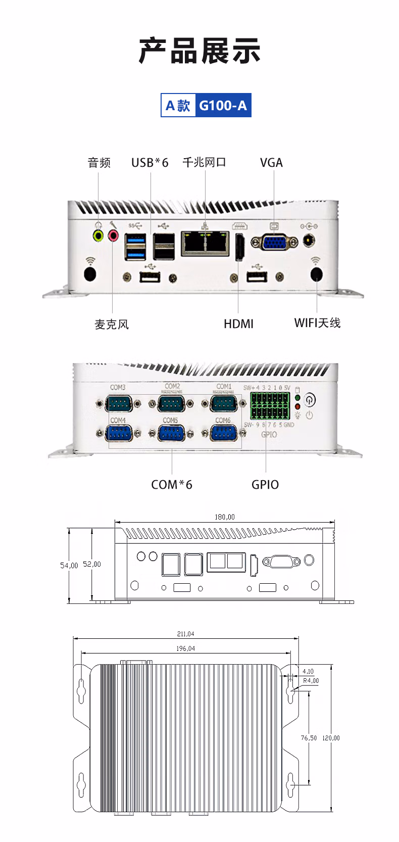 GITSTAR集特 小型J1900嵌入式工控机 可扩展接口无风扇低功耗工业电脑主机 自营