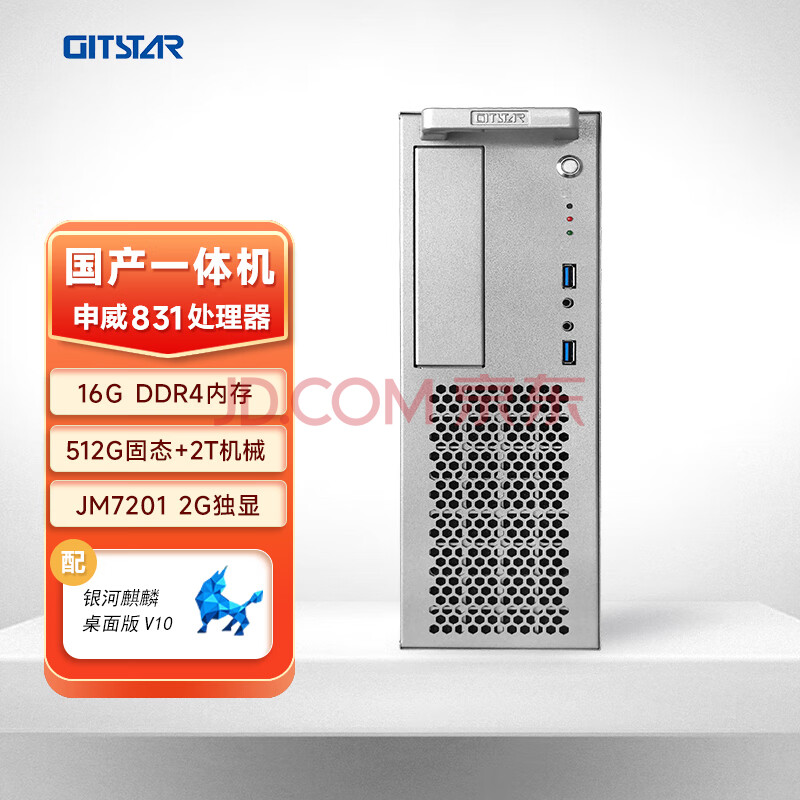 GITSTAR集特 国产申威831八核高性能商务台式机正版麒麟统信系统(16G/512GSSD+2T机械/JM7201 2G) 自营